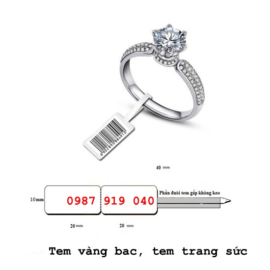 Giới thiệu Tem trang sức, Decal PVC dán lên nhẫn, tem vàng bạc cho tiệm vàng- kích thước 40x11mm dài 50m