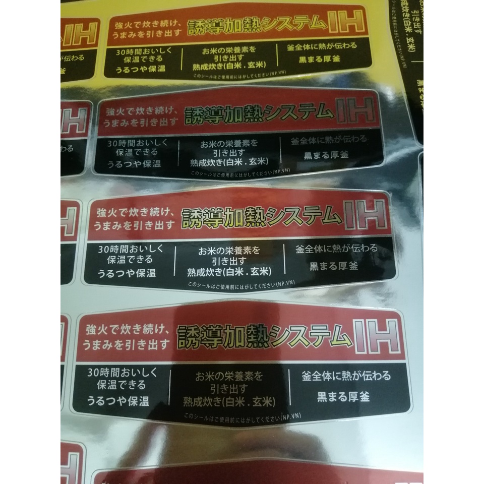 Tem trang trí nồi cơm- Chất liệu: Decal xi bạc bóng --> chống nước, đẹp mắt, tạo vẻ đẹp cho sản phẩm khi dán lên