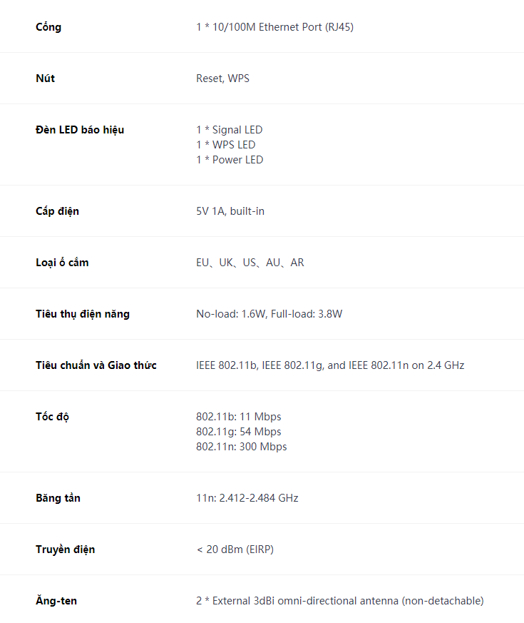 Tenda A301 V2.0 - Bộ Mở Rộng Sóng Wifi Chuẩn N Tốc Độ 300MbpsTốc độ cao, phủ sóng rộng - Thiết kế nhỏ gọnMở rộng phủ sóng cho các căn hộ chung cư, nhà nhiều tầngThiết kế hiện đại, thanh lịchChu...- Giao hàng toàn quốc
