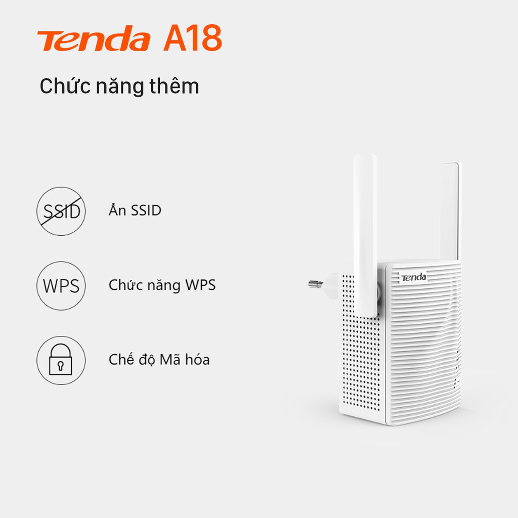 ✪ Được thành lập vào năm 1999, Tenda Technology là nhà cung cấp nổi tiếng hàng đầu cho các thiết bị mạng ✪☼ Tenda A18 là thiết bị mở rộng sóng WiFi 2 băng tần chuẩn AC1200