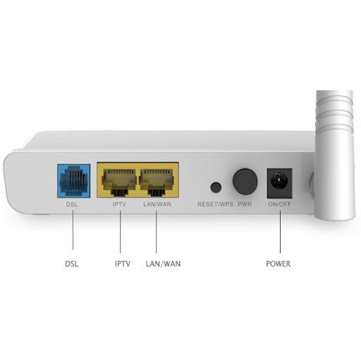 - Cổng kết nối: 1 cổng RJ11, 1 cổng LAN 10/100 Mbps, 1 cổng WAN/LAN 10/100 Mbps.
