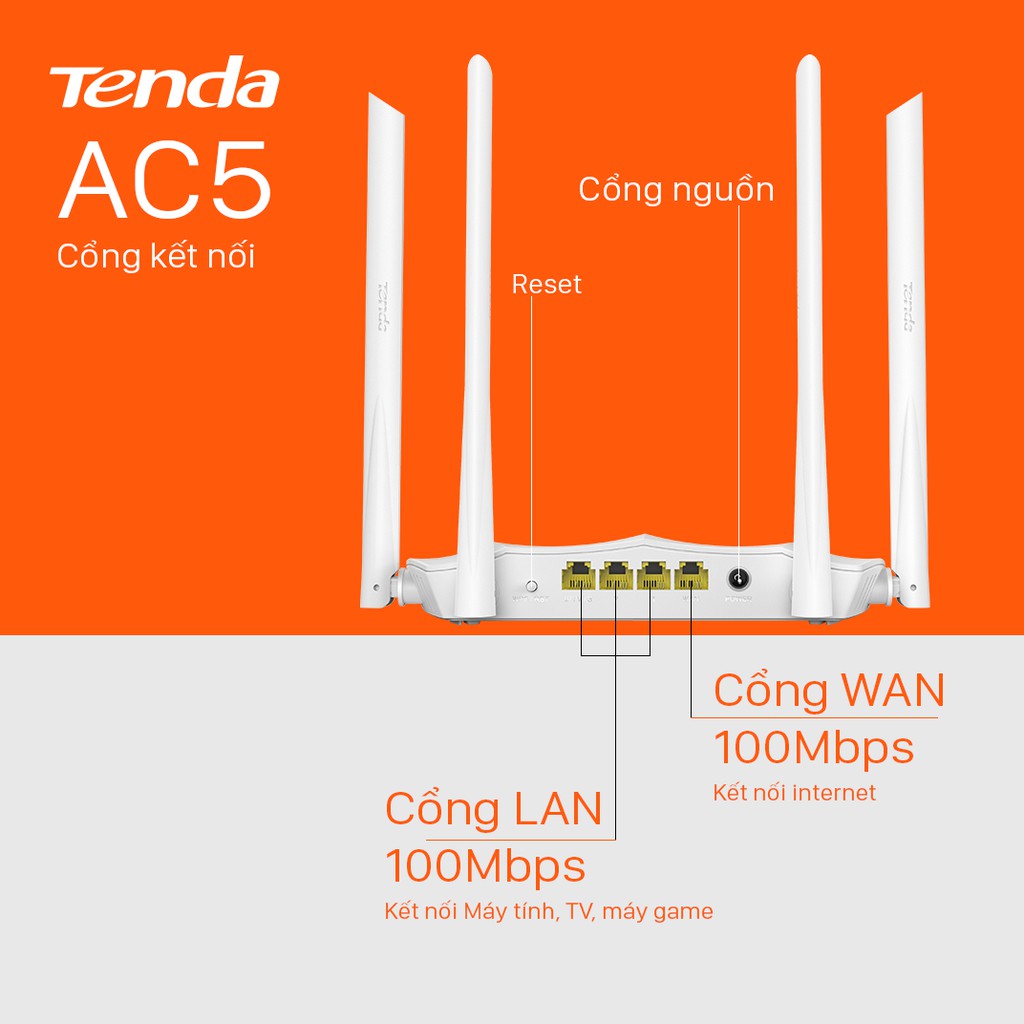 Máy tính & Laptop > Thiết Bị Mạng > Bộ Phát Wifi || Tenda Thiết bị phát Wifi AC5 Chuẩn AC 1200Mbps - Hãng phân phối chính thứcCòn hàng