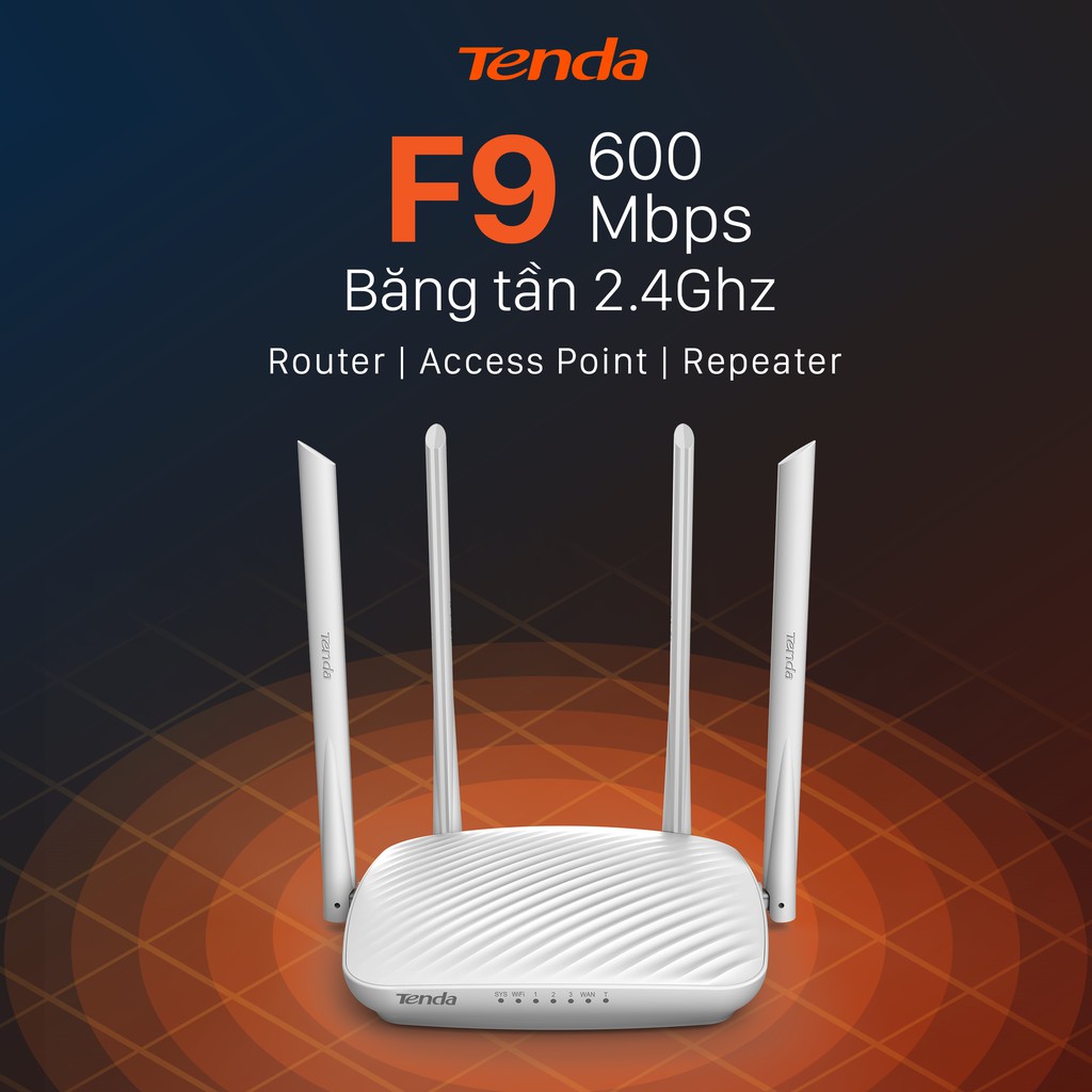 Tenda Thiết bị phát Wifi F9 Chuẩn N 600Mbps - Hãng phân phối chính thức