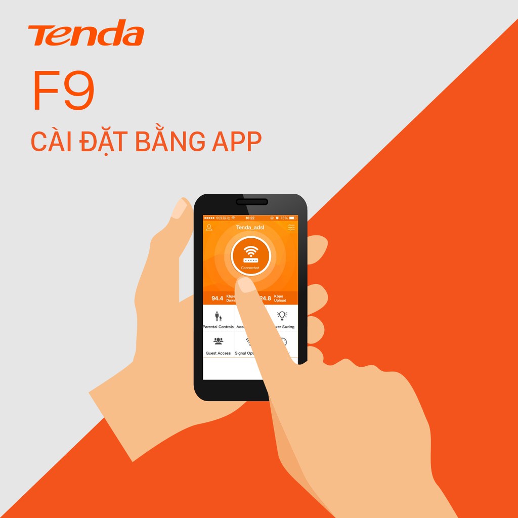 ==>Tenda F9 hỗ trợ ứng dụng quản lý trên điện thoại thông minh để bạn có thể quản lý thiết bị mọi lúc mọi nơi.