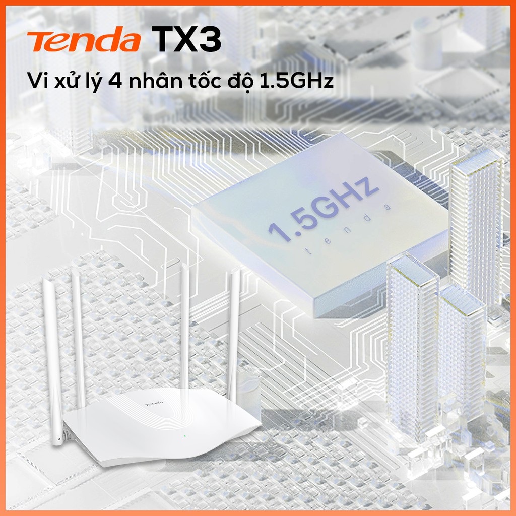 ✪ Được thành lập vào năm 1999, Tenda Technology là nhà cung cấp nổi tiếng hàng đầu cho các thiết bị mạng ✪☼ Tenda TX3 là Router WiFi thế hệ 6 mới nhất, cung cấp 2 băng tần với tốc độ tối đa 1775Mbps (2.4GHz 574Mbps , 5GHz 1201Mbps)