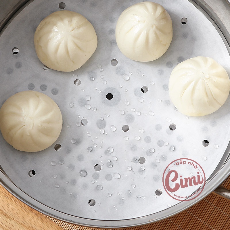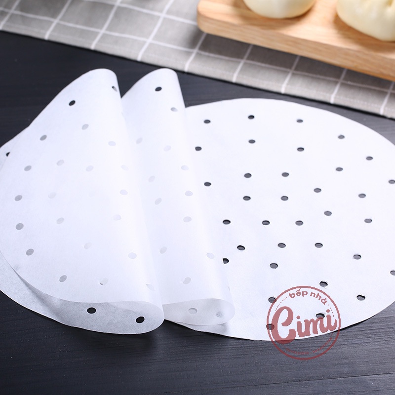Tệp 100 tờ Giấy Nến Đục Lỗ Tròn Cho Nồi Chiên Không Dầu Size 22 cm - Bếp Nhà CIMI