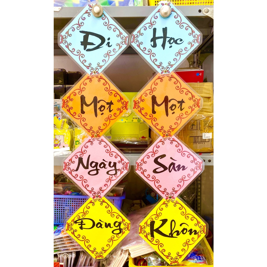 🌱 Thiết kế: Các chữ được đóng nút gắn với nhau chắc chắn. Mở ra, gấp lại dễ dàng. Phía trên cùng có chỗ xỏ dây treo. Treo hay dán đều được. Cho lớp học thêm sắc màu, thêm sinh động và mang tính giáo dục cao.