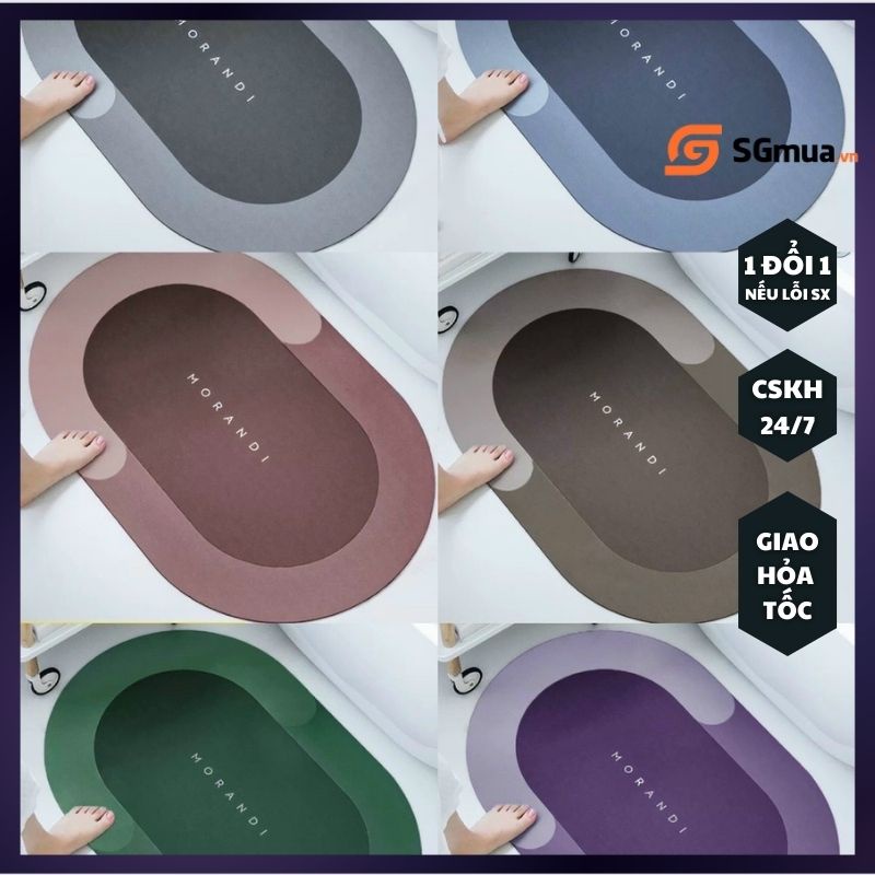 🌟 Vật liệu: Chất liệu hóa thạch Diatomite kết hợp với cao su, vải siêu thấm, chân khô ngay sau 2 cú chạm Kháng khuẩn, không nấm mốc như các thảm thông thường
