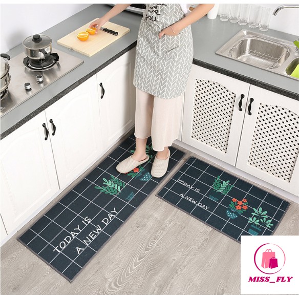 Thảm nhà bếp gia dụng đa năng chống trơn trượt trải sàn 3D 2 tấm kích thước 40 x 60 cm & 40 x 120 cm