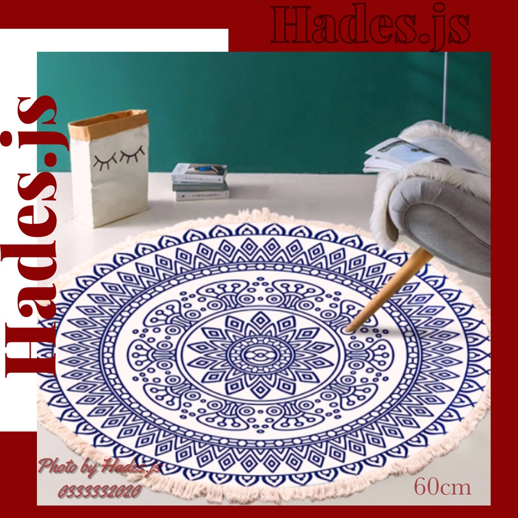 Thảm trải sàn 60cm thổ cẩm vintage - Thảm trải sàn bali tròn decor phòng khách phong cách bohomian Hades.js