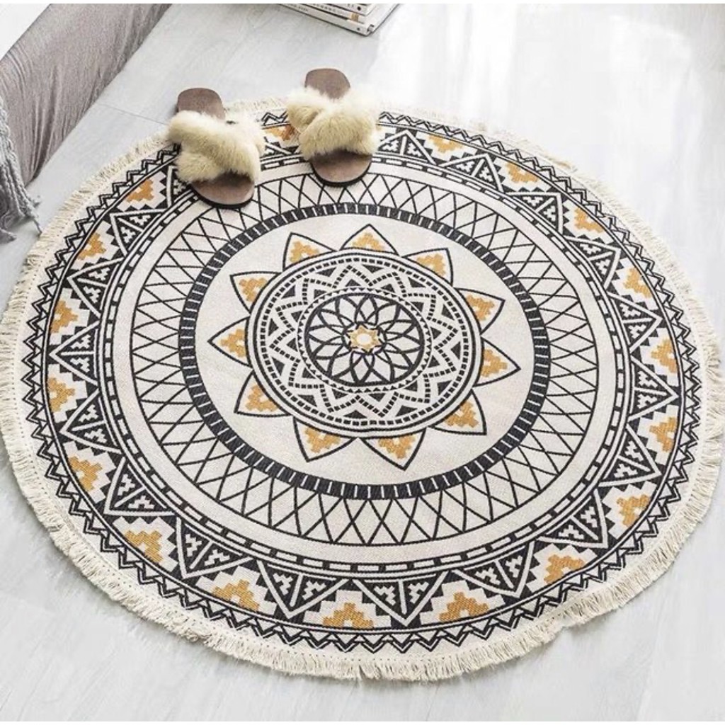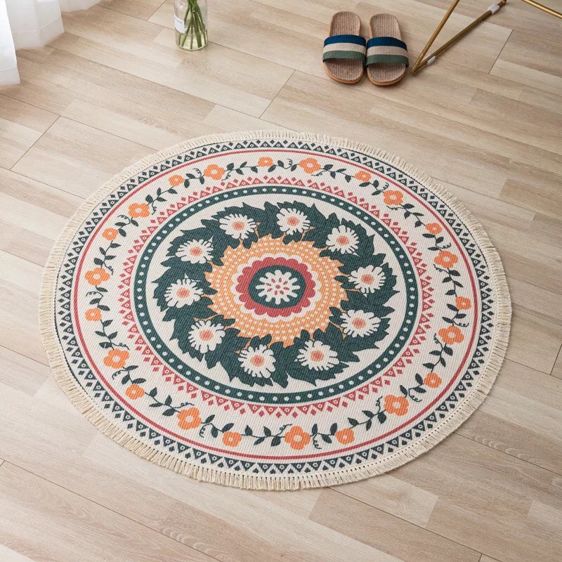 Thảm Trài Sàn Phòng Khách, Thảm Trang Trí Phong Cách Bắc Âu♥️ Thảm trang trí hình tròn phong cách Bắc Âu được dệt hoàn toàn bằng sợi vải cotton tự nhiên, họa tiết sinh động, màu sắc đa dạng...
