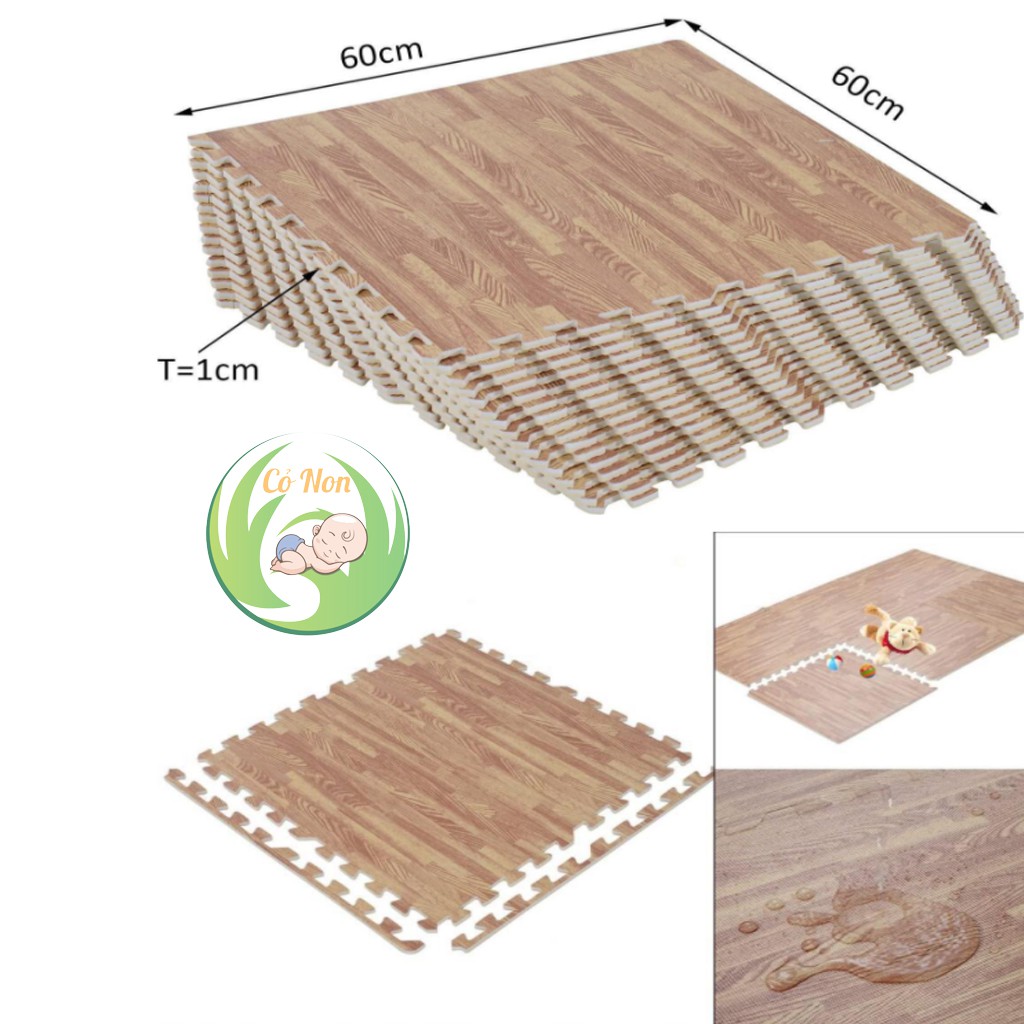 - Thảm xốp lót sàn vân gỗ 6 miếng 60x60cm dễ dàng rắp ráp cho bạn sử dụng để trang trí cho các không gian vui chơi của bé.