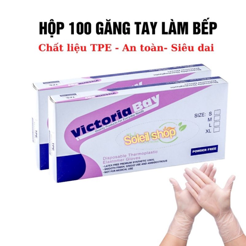 Hộp 100 cái găng tay cao su TPE dùng 1 lần Victoria làm bếp nấu ăn vệ sinh siêu dai - 100 cáiĐặc điểm nổi bật :