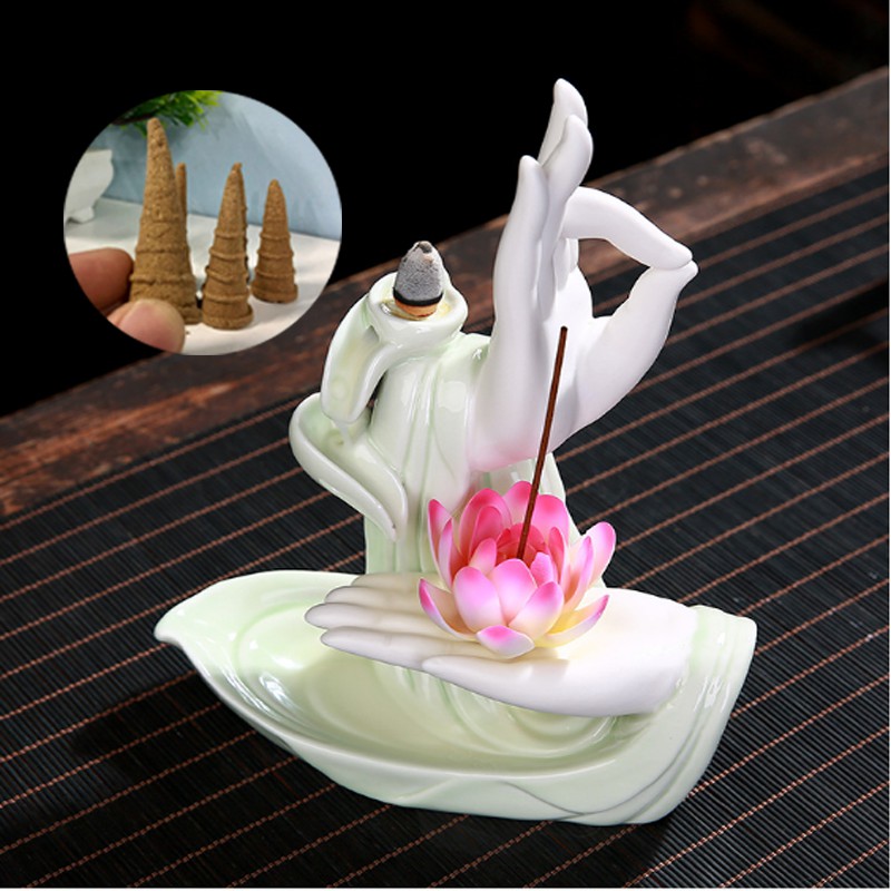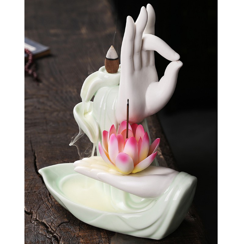 Nhà cửa & Đời sống > Chất khử mùi, làm thơm nhà > Khác || Thác khói trầm hương CAO CẤP TẶNG 5 NỤ TRẦM LOẠI 1 mẫu Tay Phật Ngọc Thủ Ấn, thác khói toả ngượcCòn hàng