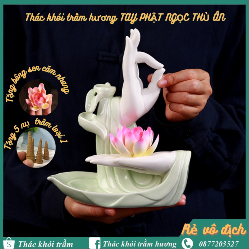 Thác khói trầm hương CAO CẤP TẶNG 5 NỤ TRẦM LOẠI 1 mẫu Tay Phật Ngọc Thủ Ấn, thác khói toả ngược