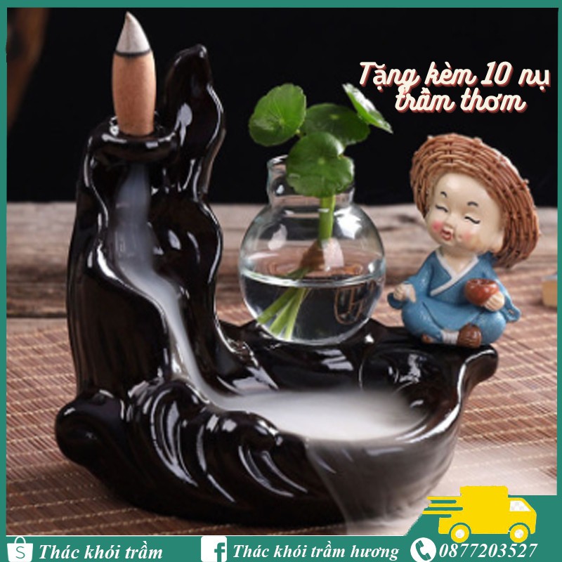 Nhà cửa & Đời sống > Chất khử mùi, làm thơm nhà > Khác || Thác Khói Trầm Hương CHÚ TIỂU XANH BÊN SUỐI tặng 10 nụ trầm, thác khói chảy ngược dùng đốt hoặc xông nụ trầm hươngCòn hàng