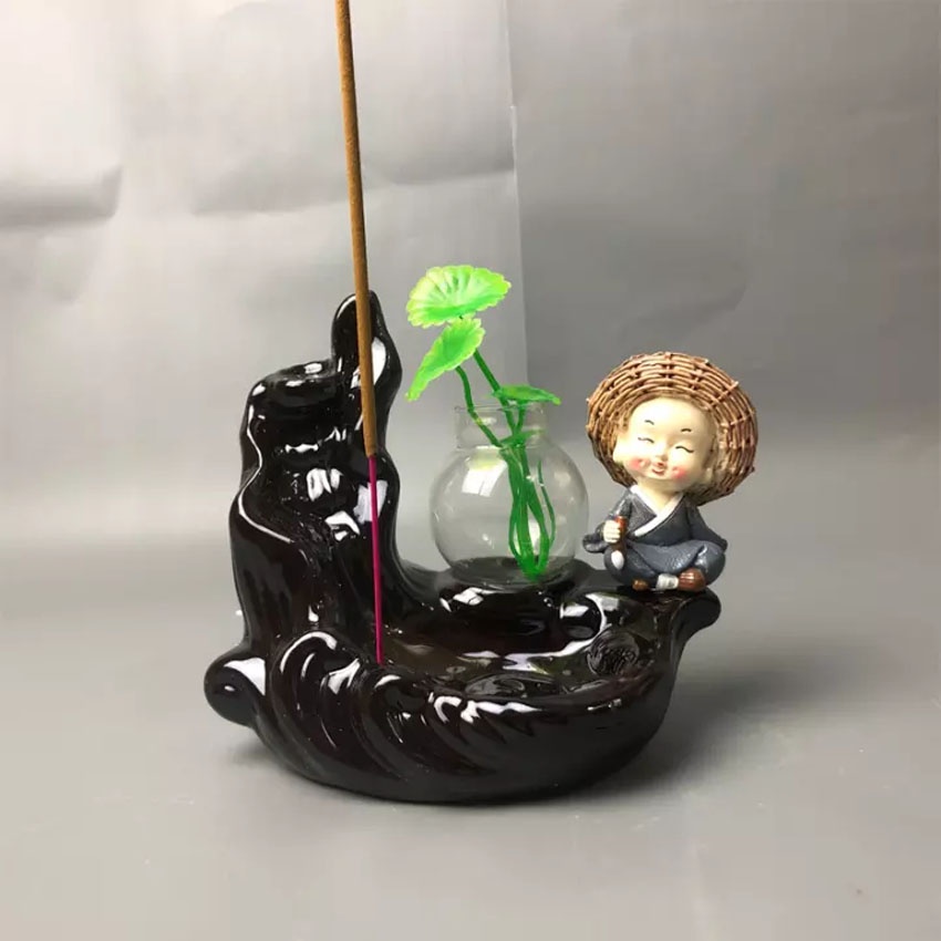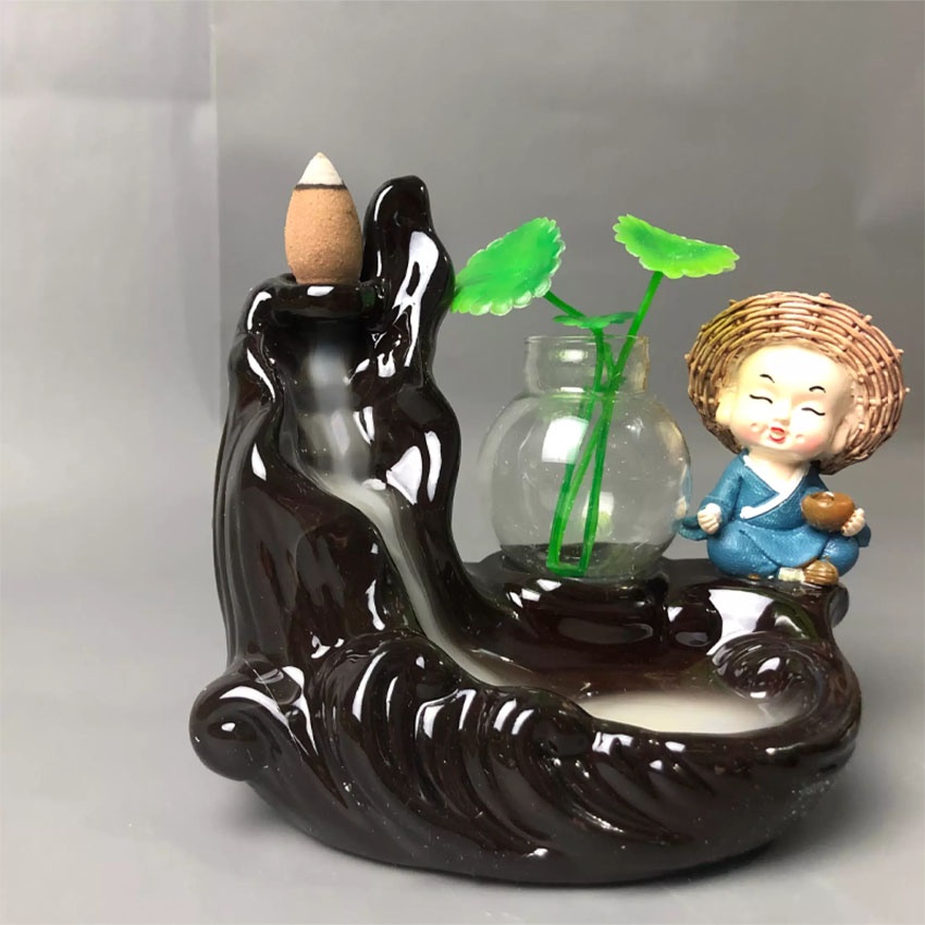 👉Chất liệu Thác khói : gốm cao cấp phủ sơn cách nhiệt, tạo hình chú tiểu bên suối