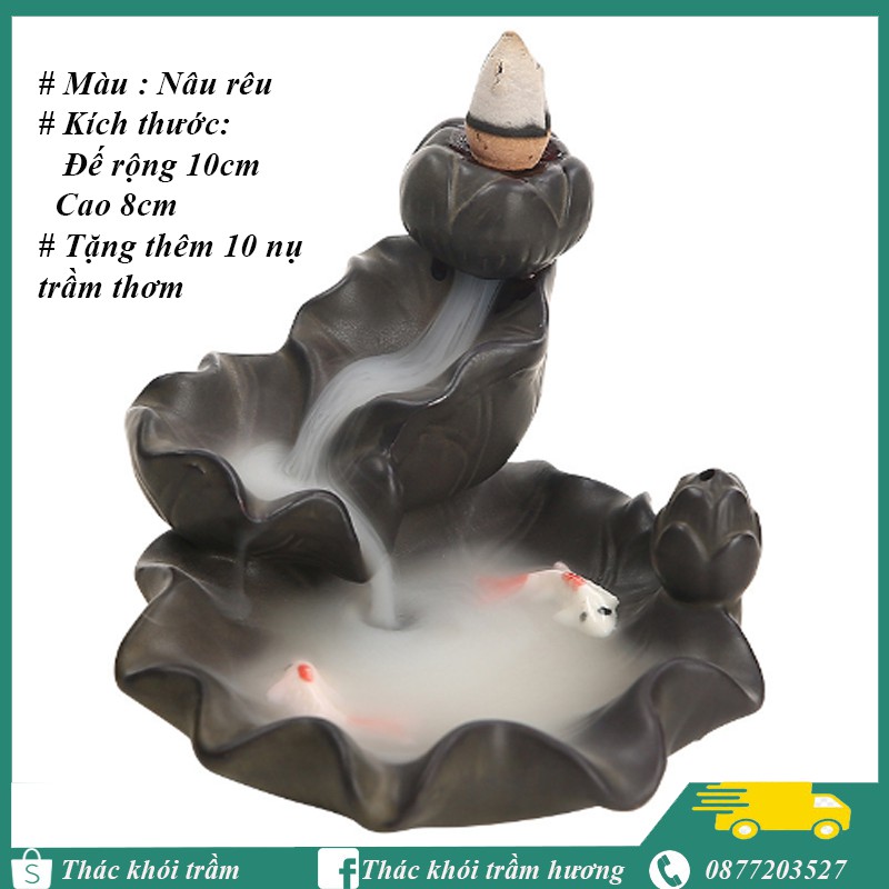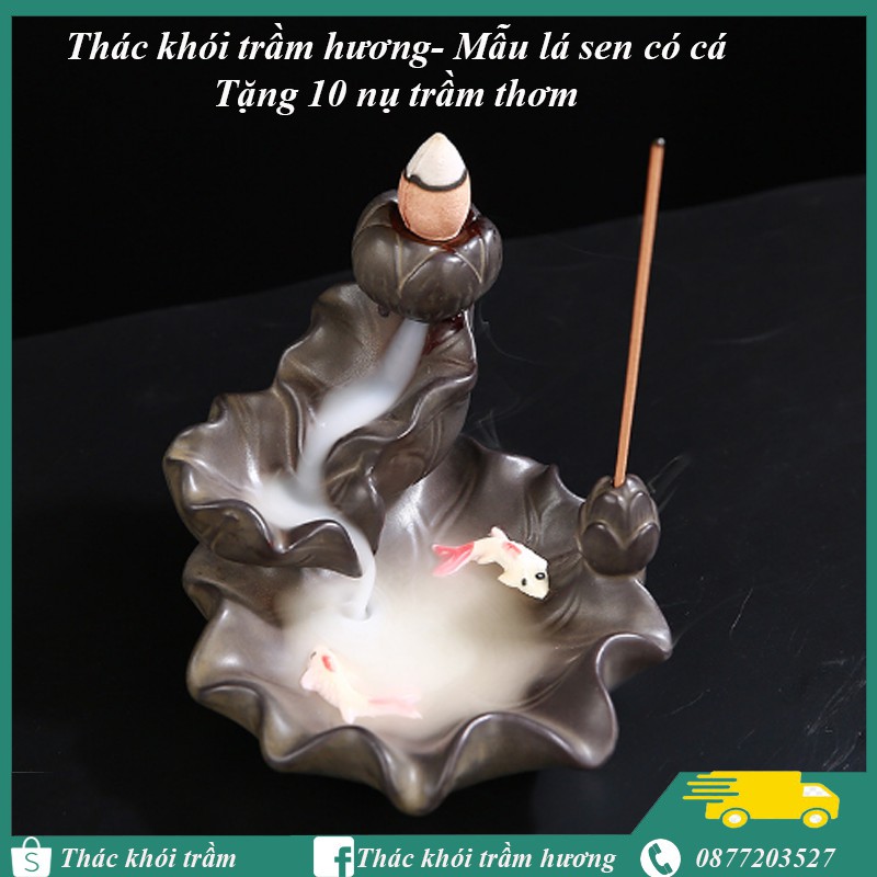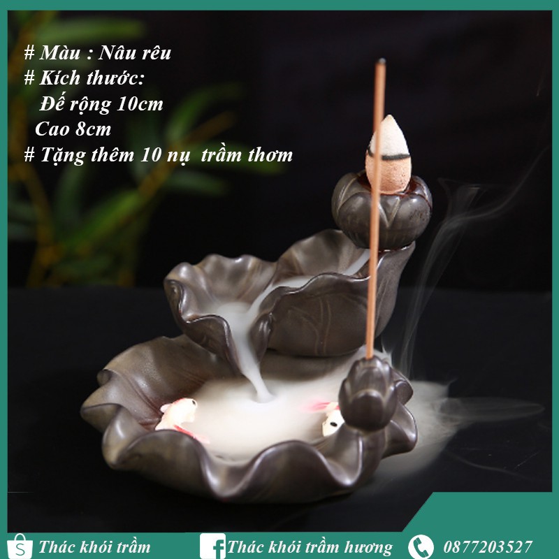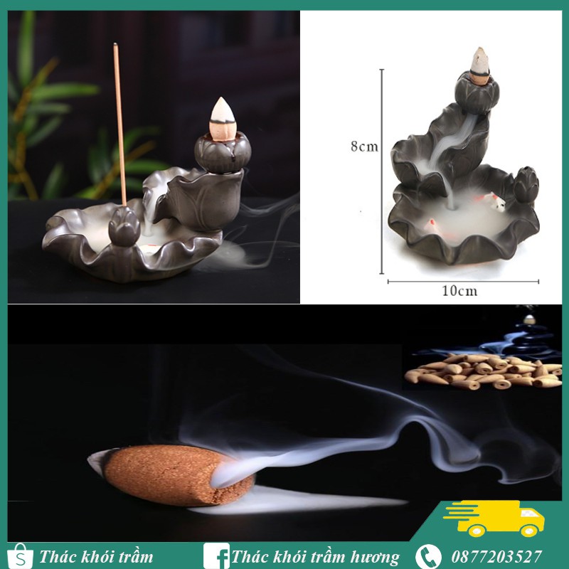 Nhà cửa & Đời sống > Chất khử mùi, làm thơm nhà > Khác || Thác khói trầm hương LÁ SEN CO CÁ tặng 10 nụ trầm,thác khói chảy ngược dùng đốt hoặc xông nụ trầm hươngCòn hàng