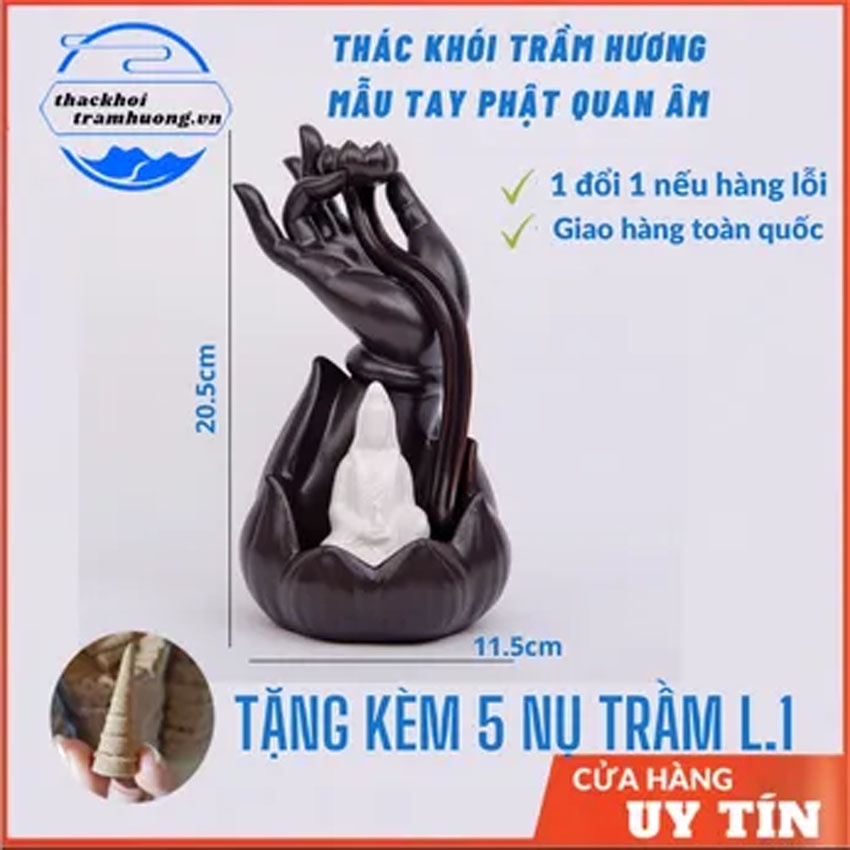 Giới thiệu Thác khói trầm hương PHẬT BÀ QUAN ÂM tặng 5 nụ trầm loại 1, thác khói chảy ngược dùng đốt hoặc xông nụ trầm hương