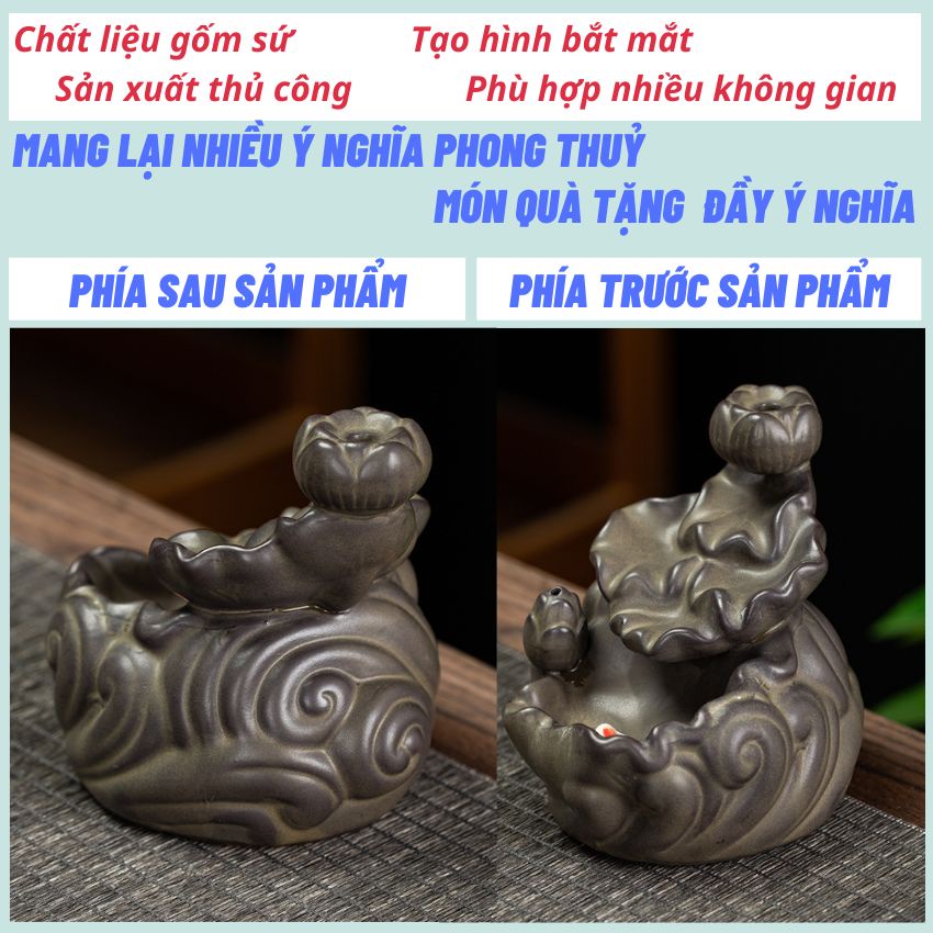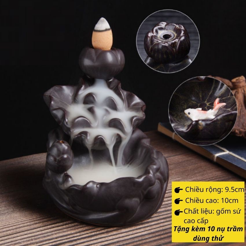 👉Chất liệu Thác khói : gốm cao cấp phủ sơn cách nhiệt, tạo hình toà sen