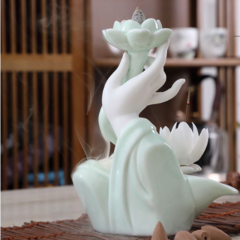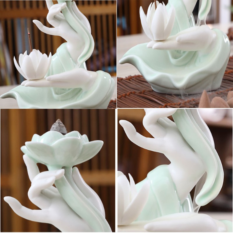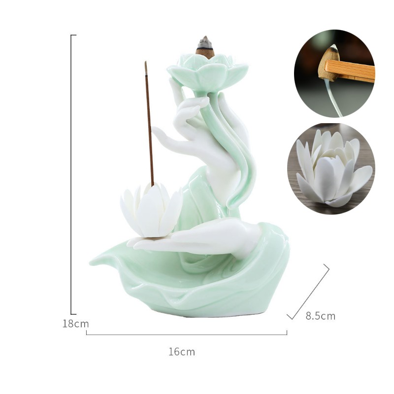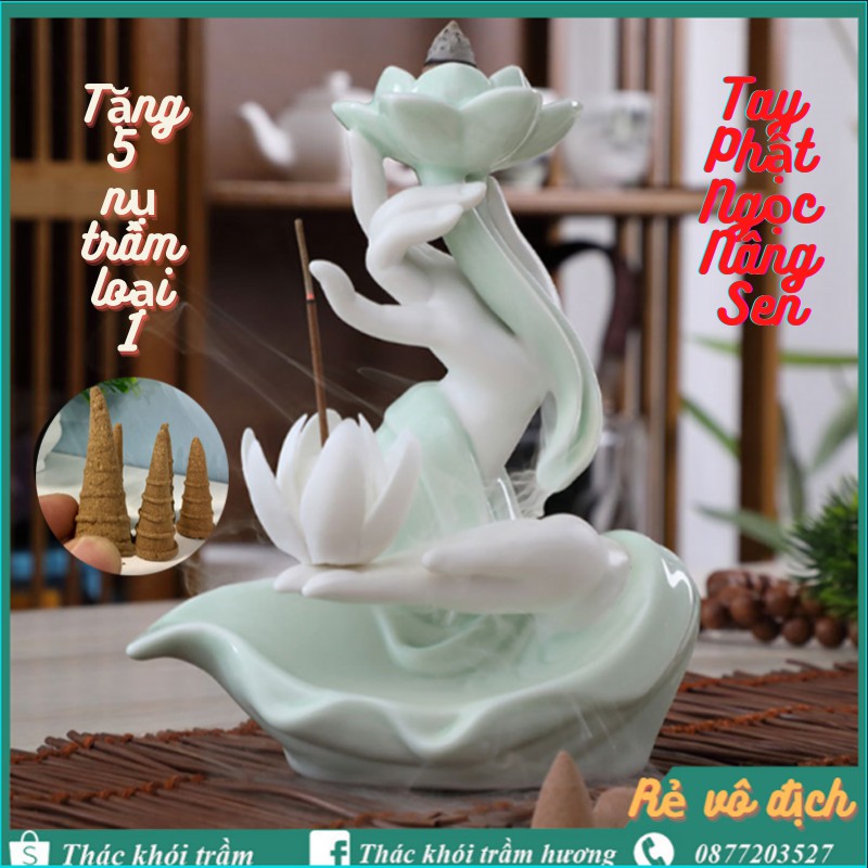 Nhà cửa & Đời sống > Chất khử mùi, làm thơm nhà > Khác || Thác khói trầm hương TẶNG 5 NỤ TRẦM LOẠI 1 mẫu TAY PHẬT NGỌC NÂNG SEN, thác khói toả ngượcCòn hàng