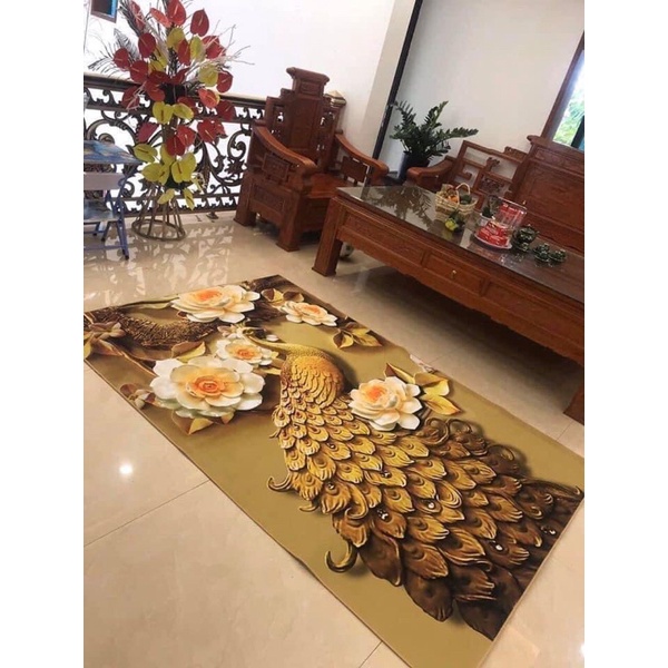 thảm bali công vàng đẹp đến từng chi tiết . có sẵn 2 kích thước 1m6x2m3 và 2mx3m