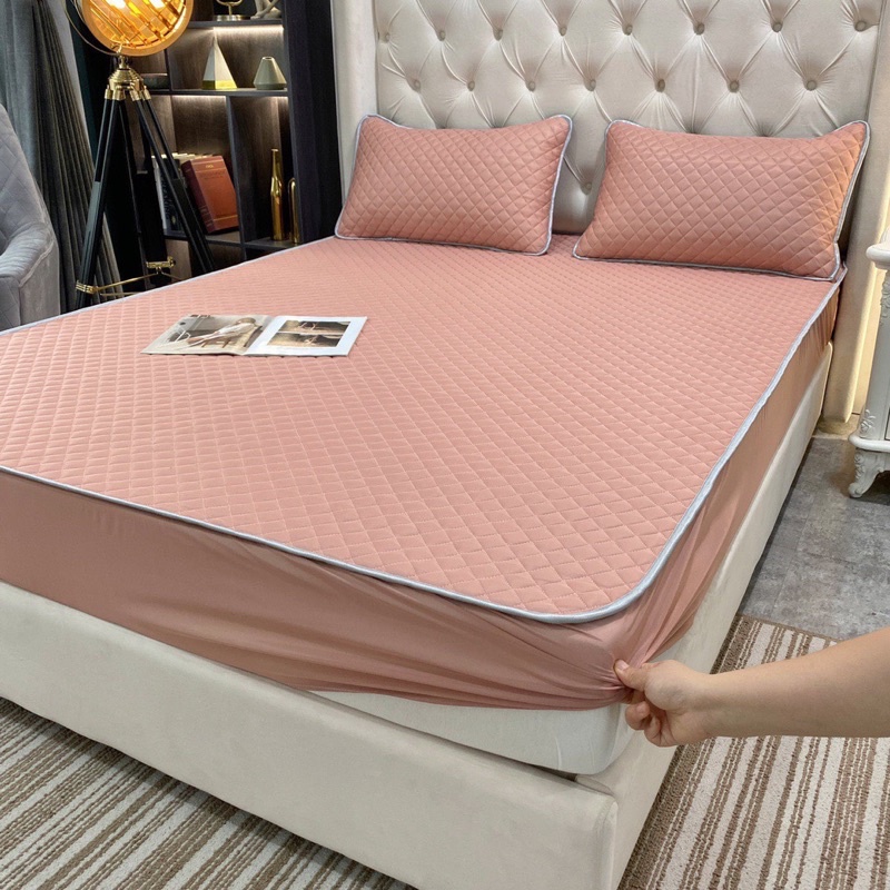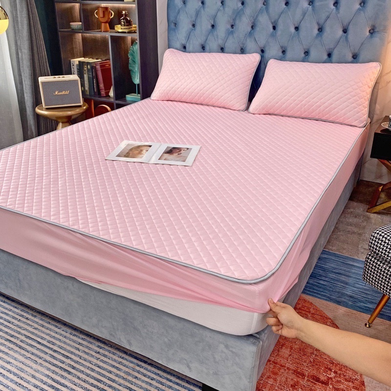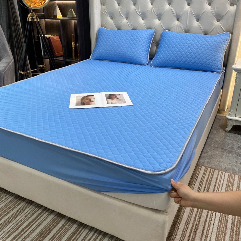 Nhà cửa & Đời sống > Chăn ga gối nệm > Tấm bảo vệ nệm, topper || Bộ thảm bảo vệ đệm kèm 2 vỏ gối đầu vải thun lạnh lõi cao su nonCòn hàng
