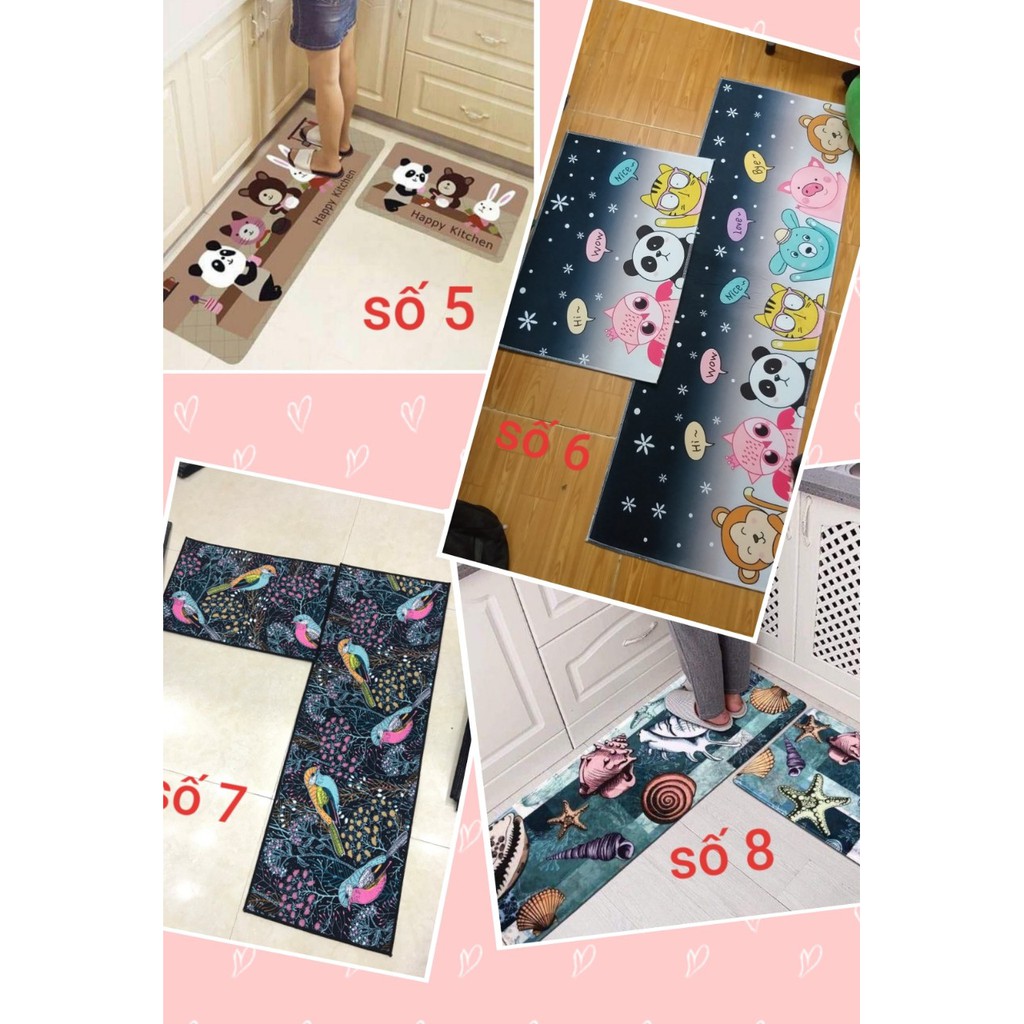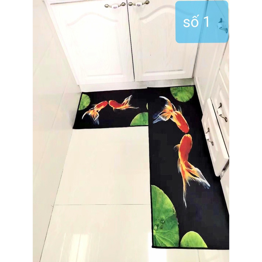 Bộ Thảm Bếp 3D Nỉ Cotton Thấm Hút Đế Cao Su Mềm (Hàng có viền)