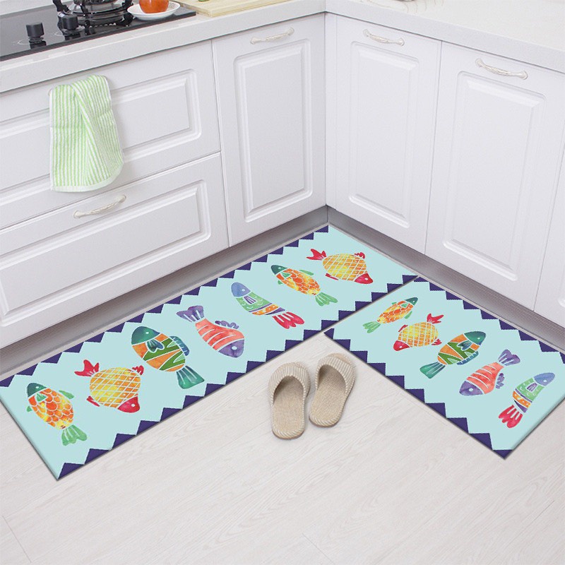 Giới thiệu Thảm Bếp Chùi Chân 2 Tấm 3D Lau Sàn, Trang Trí Chống Trơn Trượt Cực TốT MẪU ĐÀN CÁ