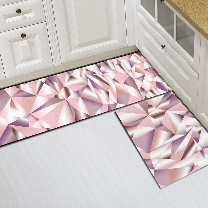 Giới thiệu Thảm Bếp Chùi Chân 2 Tấm 3D Lau Sàn, Trang Trí Chống Trơn Trượt Cực TốT MẪU ĐÁ HỒNG