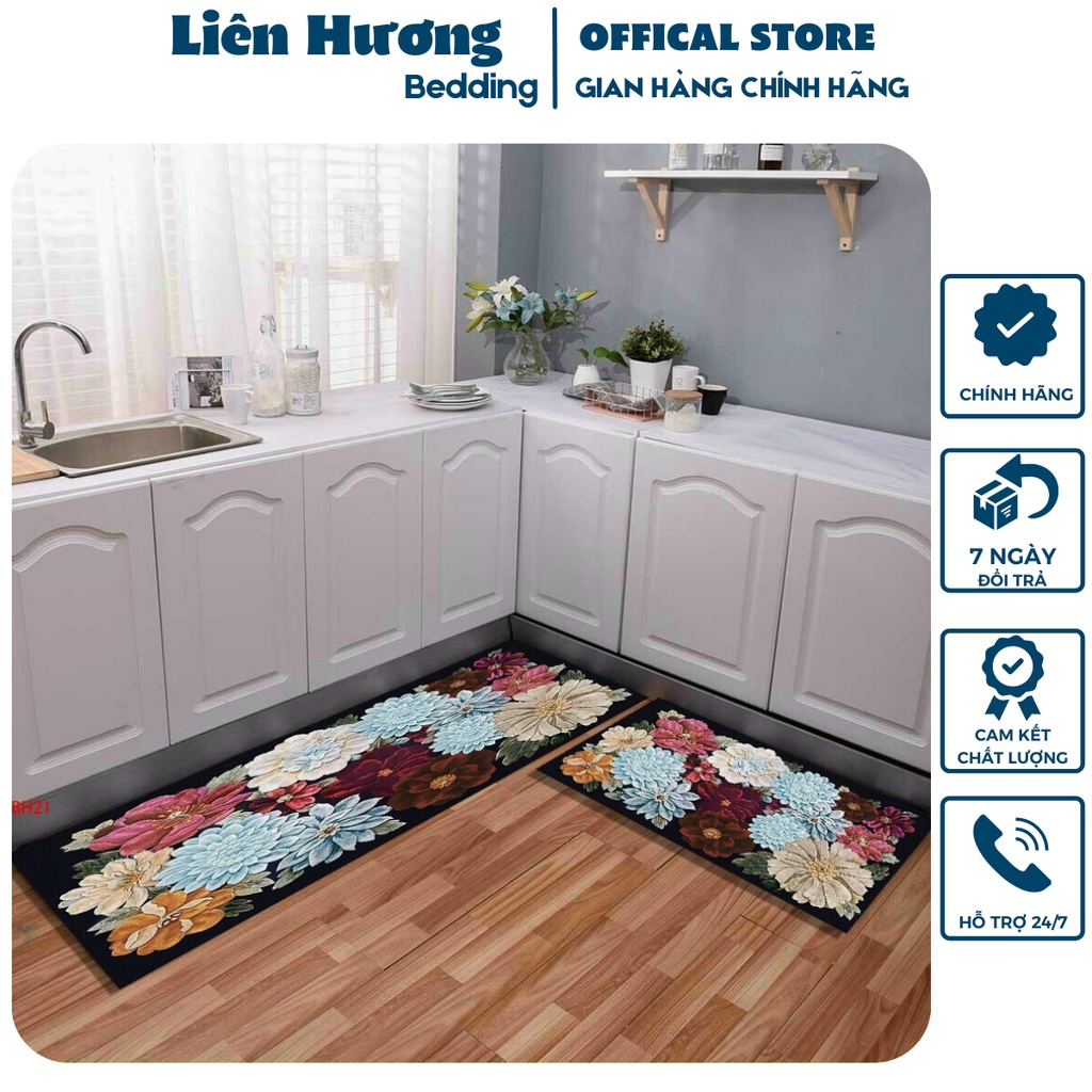 Bộ thảm bếp hàng loại 1 mềm min thấm hút cực kỳ tốt, mặt dưới có lớp chống trơn trượt cao cấp