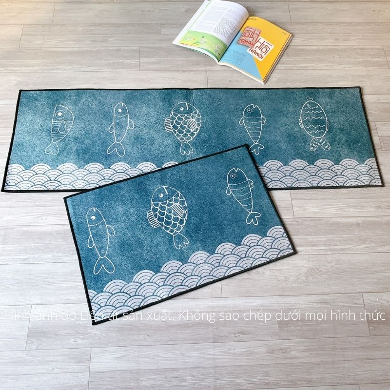 - Thảm bếp bề mặt mềm mịn, họa tiết in sắc nét, bo viền chắc chắn