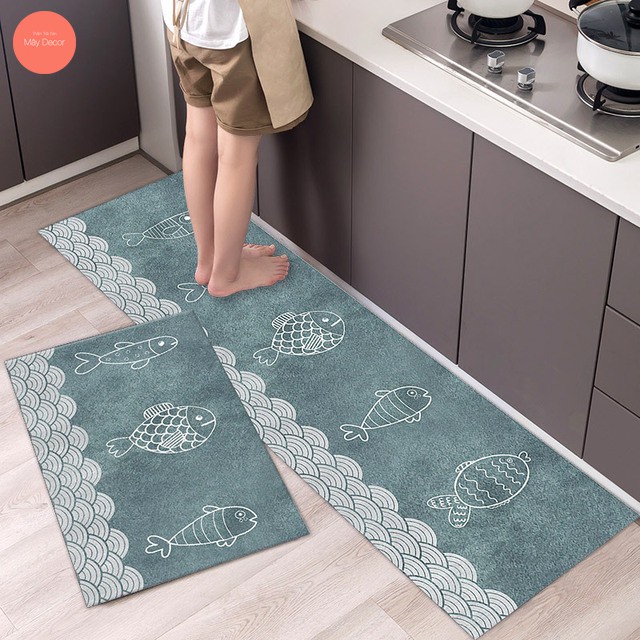 Thảm bếp lót bếp lau chân trải sàn nhà cao cấp Mây Decor chống trơn trượt một bộ 2 size dài 40x120 và 40x60cm