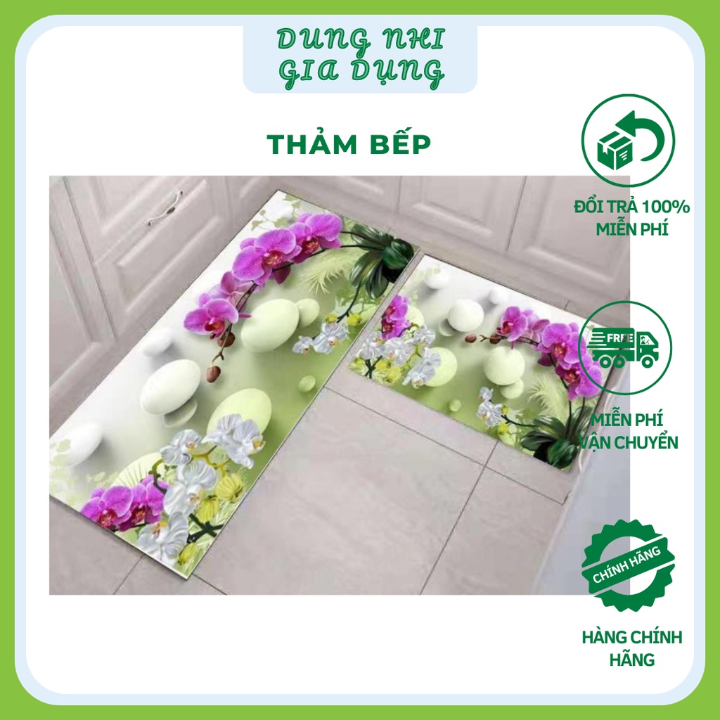 Thảm Bếp Trải Sàn Họa Tiết 3D ComBo 2 chiếc Thảm Lót Sàn Chùi Chân Nhà Bếp Siêu Thấm Hút Chống Trơn Trượt