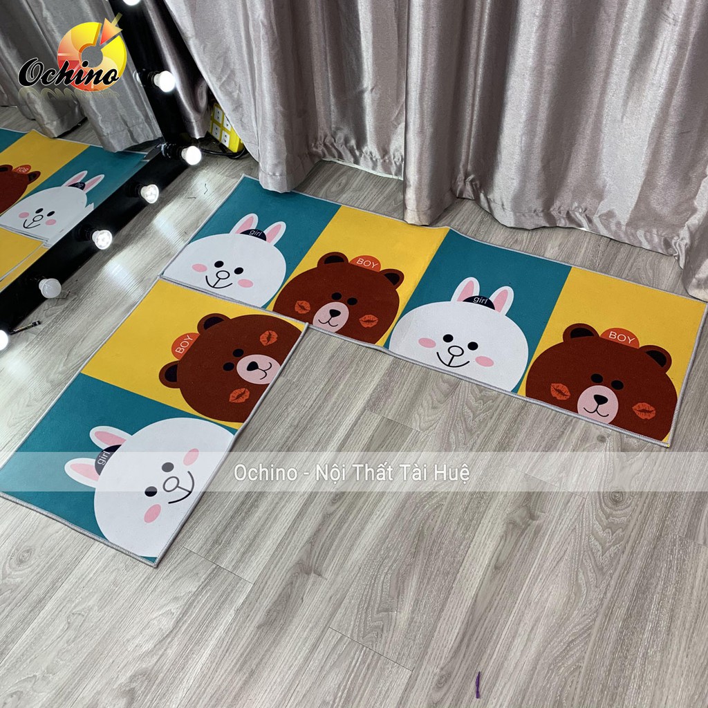 Bộ Thảm Bếp Xinh Xắn, Thảm Bếp (Gồm 2 miếng 40-60cm và 40-120cm, Có mặt sau chống trơn trượt)
