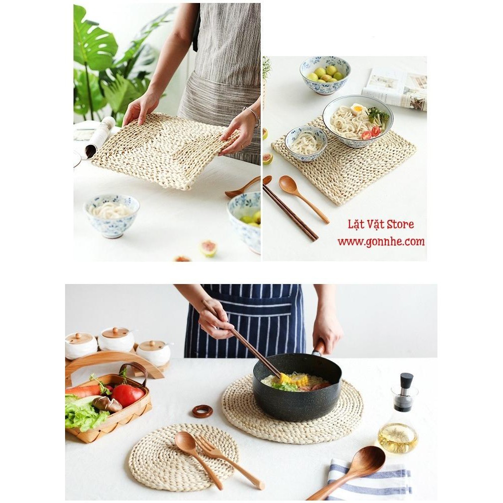 Nhà cửa & Đời sống > Bộ đồ bàn ăn > Khay, tấm lót bàn ăn || Tấm thảm cách nhiệt bằng vỏ trấu ngô được dệt thủ công, đạo cụ trang trí chụp ảnh, tấm pad lót ly, bát, đũa đẹpCòn hàng
