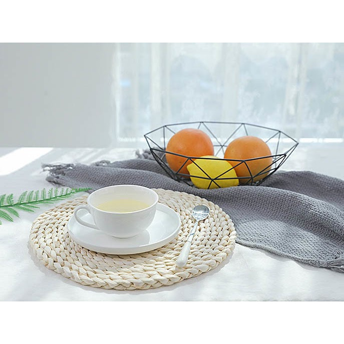 Thảm trang trí cách nhiệt được đan thủ công từ vỏ ngô, với tông màu tươi sáng hiện đại. Phù hợp dùng làm thảm cách nhiệt hoặc thảm trang trí chup ảnhSản phẩm được dùng làm phụ kiện trang trí chụp ảnh