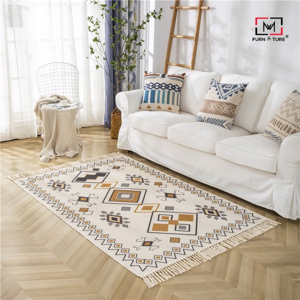 Thảm canvas trải sàn tua rua phong cách bắc âu trải chân giường phòng khách thương hiệu MW FURNITURE