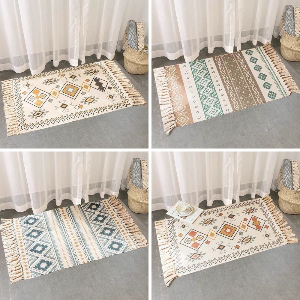 Nhà cửa & Đời sống > Trang trí nhà cửa > Thảm trải sàn || Thảm Canvas Tua Rua Bắc Âu Thổ Cẩm Hình Học Cam Nâu 60x90cm PA9970Còn hàng
