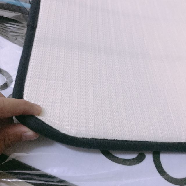 Chất liệu. Bề mặt là lớp vải nhung mịn, ở giữa là lớp mút thấm nước chuyên dụng, bên dưới là lớp cao su hoa văn chống trượt.