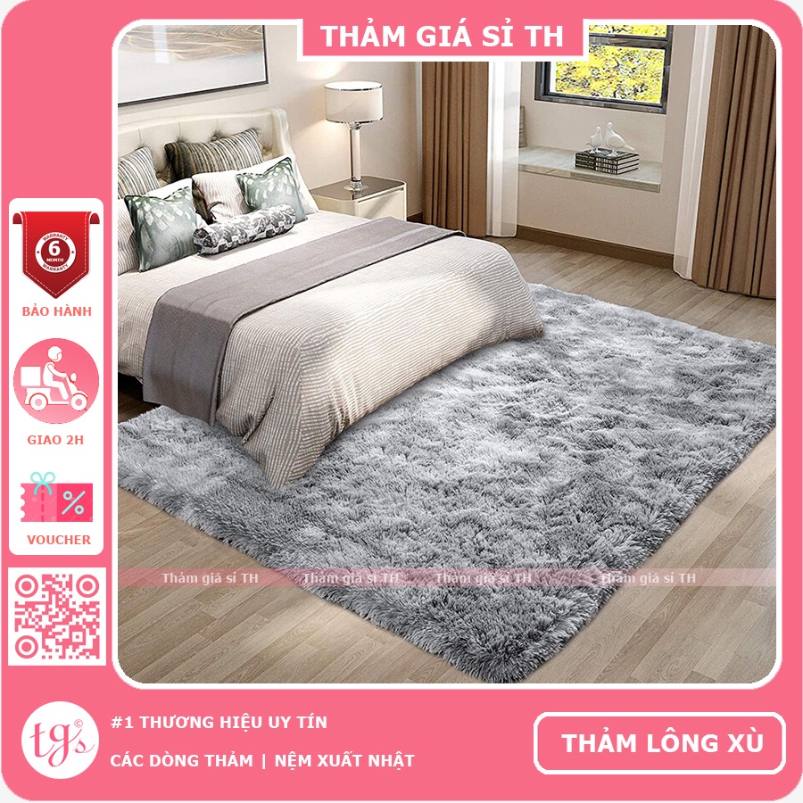 Thảm cho bé, trang trí trải sàn phòng khách, trải sàn phòng ngủ lông xù loang màu xám lông chuột