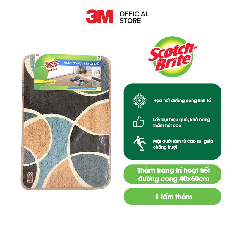 Giới thiệu Thảm chống trượt cao cấp Scotch Brite 3M 40x60cm đa năng, lấy bụi hiệu quả, thấm hút nước tốt, hoạ tiết đường cong