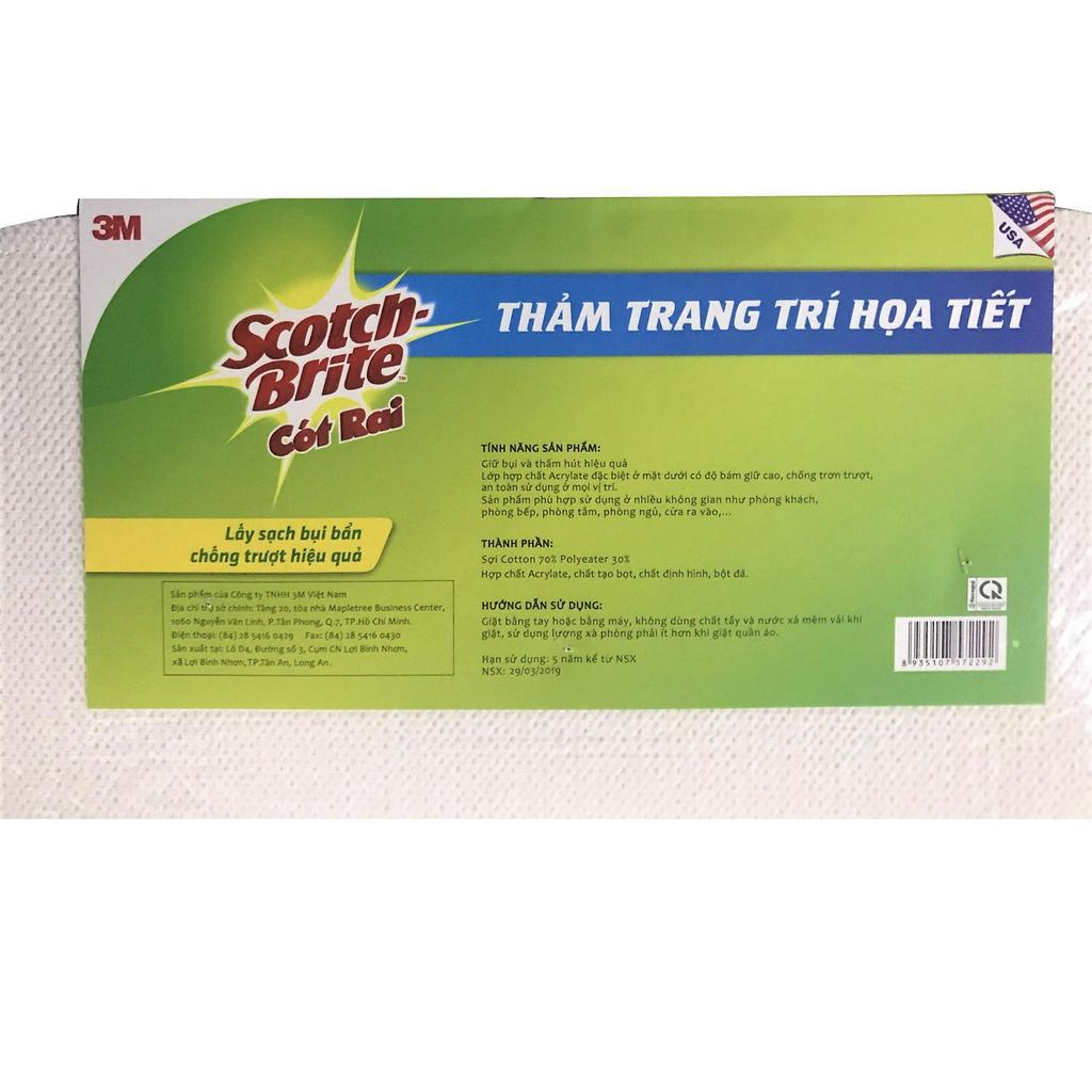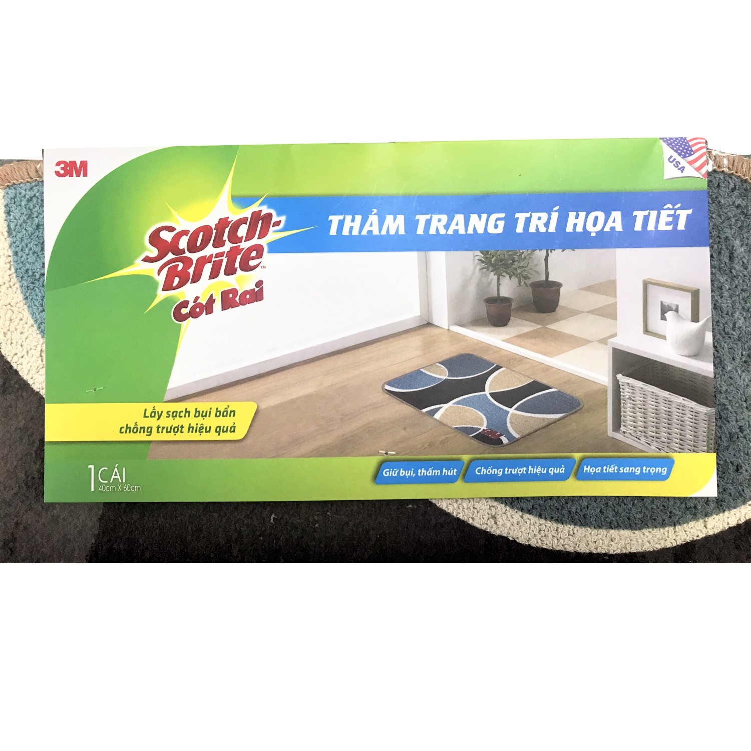 Thảm chống trượt cao cấp Scotch Brite 3M 40x60cm đa năng, lấy bụi hiệu quả, thấm hút nước tốt, hoạ tiết đường cong