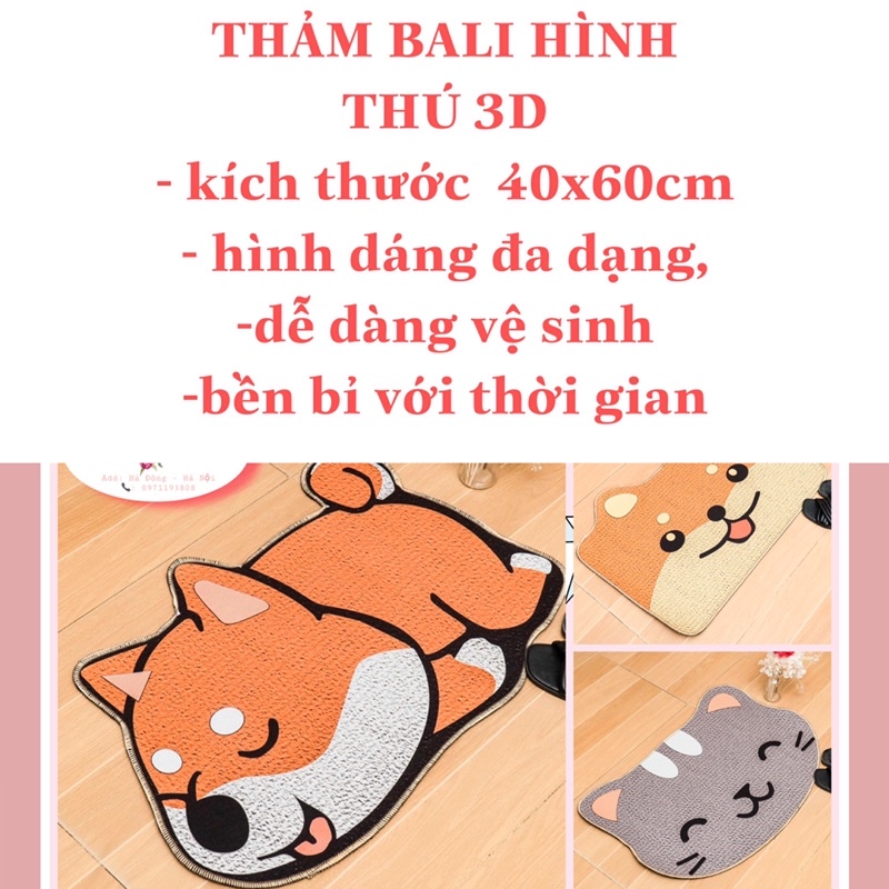 Thảm chùi chân bali hình thú 3D trang trí nhà cửa, mặt đế cao su chống trượt