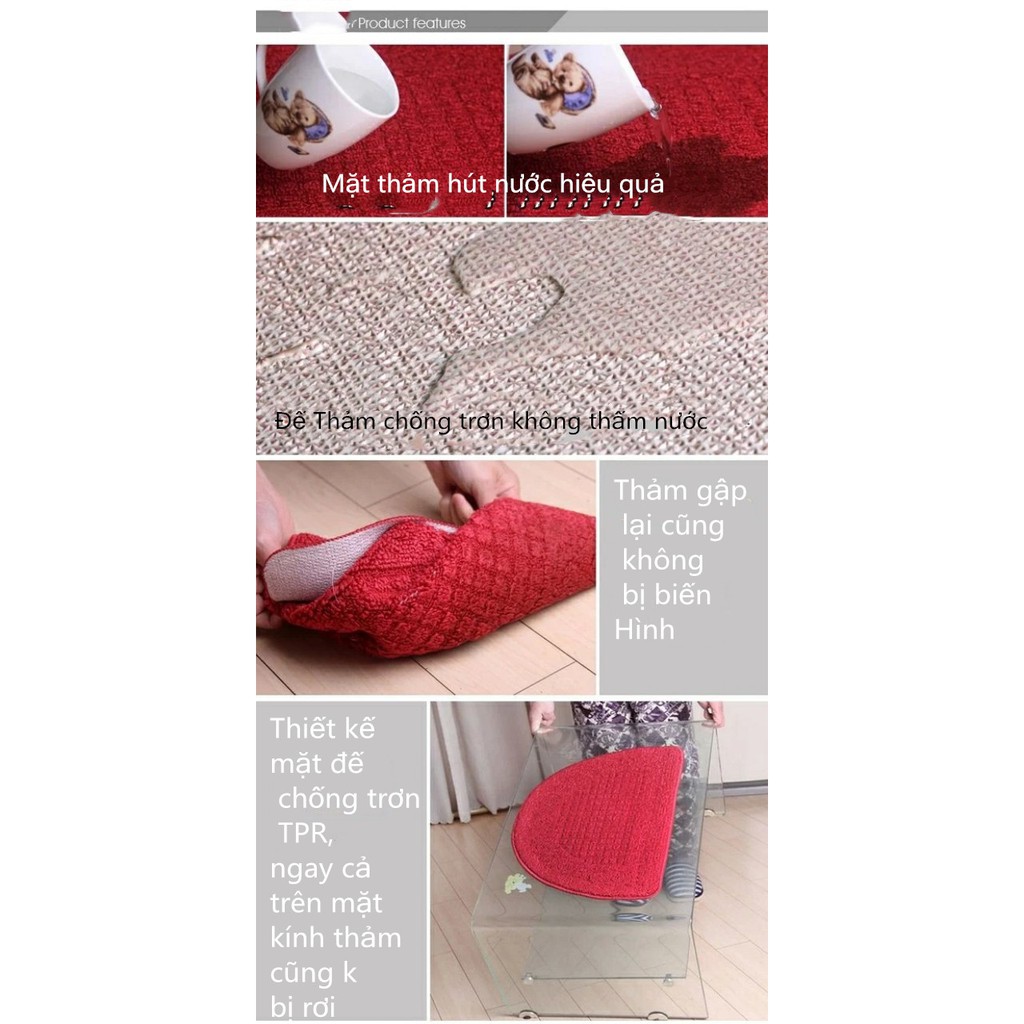 Chùi chân bán nguyệt kích thước 40*60cm với bề mặt mịn và đế cao su chống trơn, chống xước.Với nhiều màu sắc phù hợp mọi không gian. Thảm chùi chân bán nguyệt size: 40x60cm+ Thấm hút tốt, êm ái