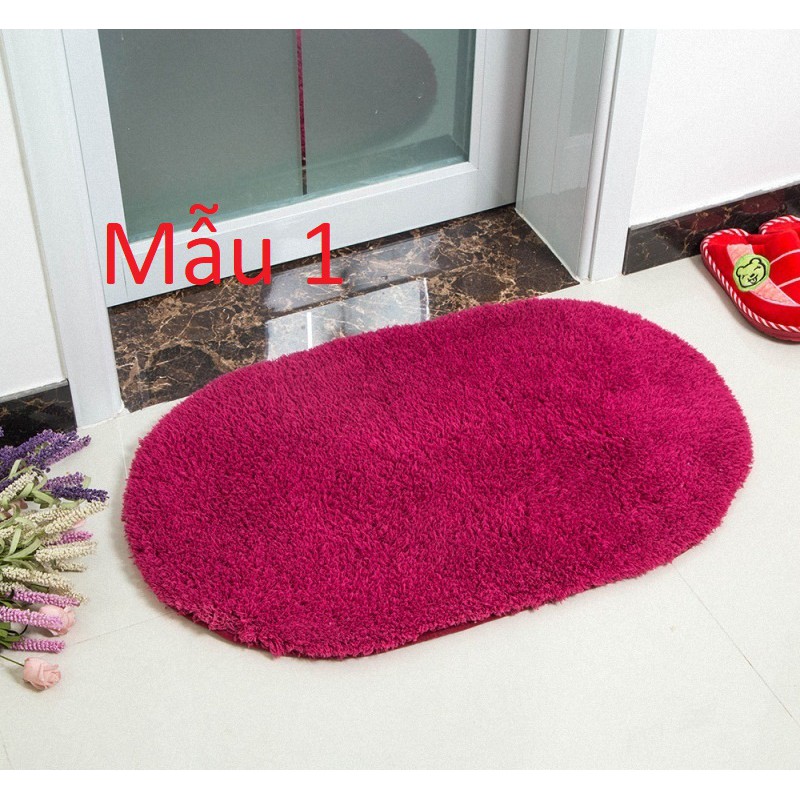 👉Chất liệu: bề mặt thảm bằng lông nhung mịn thấm hút cực tốt, mặt đáy bằng chất liệu cao su có độ ma sát rất cao giúp chống trơn trượt