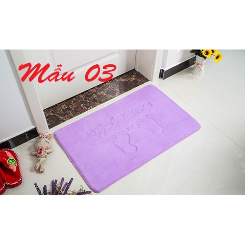 👉Chất liệu: bề mặt thảm bằng lông nhung mịn thấm hút cực tốt, mặt đáy bằng chất liệu cao su có độ ma sát rất cao giúp chống trơn trượt