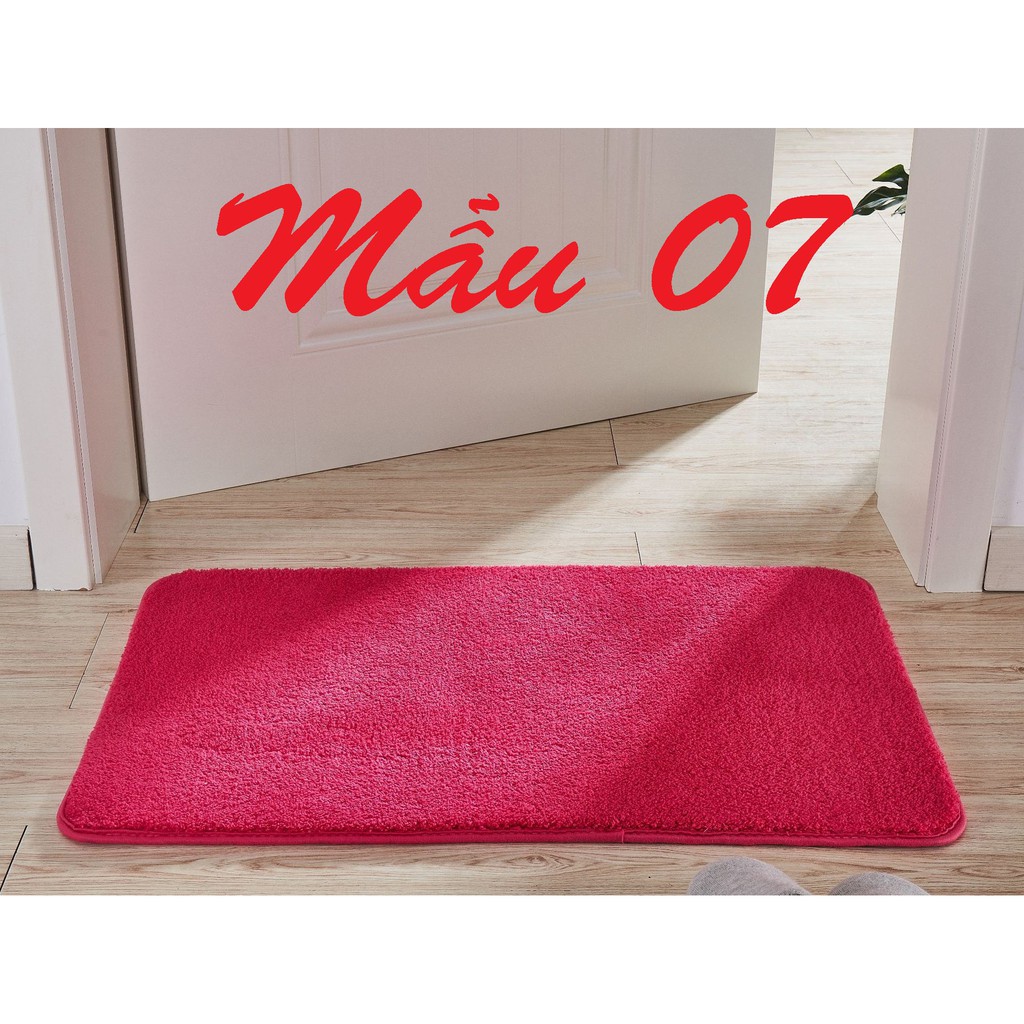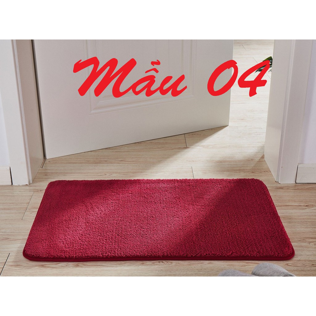 👉Chất liệu: bề mặt thảm bằng lông nhung mịn thấm hút cực tốt, mặt đáy bằng chất liệu cao su có độ ma sát rất cao giúp chống trơn trượt