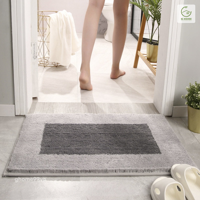 Thảm chùi chân Ghome họa tiết kẻ ô sợi len lông thấm hút tốt, chống trơn trượt cho phòng tắm TC01 KE3O
