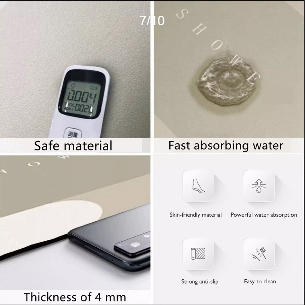 [An toàn chống trượt Thảm Tắm] này nâng cấp Thảm Tắm có chống trượt các hạt trên trở lại, có thể làm tăng ma sát với mặt đất và làm giảm nguy cơ của trẻ em và người già trượt hoặc rơi. Với thảm Diatomite, bạn sẽ có một trải nghiệm tắm dễ chịu.